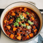 This hearty Sweet Potato & Black Bean Chili is a warm, comforting dish packed with vibrant flavors, perfect for cozy evenings or gatherings with friends.