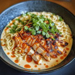 Fiery Chicken Ramen with Creamy Garlic Sauce is a quick and flavorful dish that brings together tender chicken, creamy garlic goodness, and spicy ramen noodles. With just a few simple ingredients and easy steps, you can enjoy this delightful meal in under 30 minutes. Whether you’re adjusting the spice level or prepping it for later, this recipe offers versatility without compromising on taste. Give it a try tonight for an unforgettable dining experience!