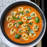 Now, let me take you down memory lane. I remember the first time I made this soup; my kitchen looked like a tornado hit it. Flour everywhere, tomatoes splattered on the walls, and me—dancing around with a wooden spoon like I was auditioning for a cooking show. But when I finally tasted that first spoonful of creamy bliss, all the chaos was worth it. Whether it’s a chilly evening or a cozy gathering with friends, this Creamy Tomato Basil Tortellini Soup is sure to impress!