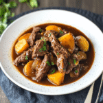Indulge in a heartwarming, slow-cooked meal featuring tender beef and baby potatoes drenched in a sweet and savory honey-garlic sauce. Perfect for family gatherings or cozy weeknight dinners.